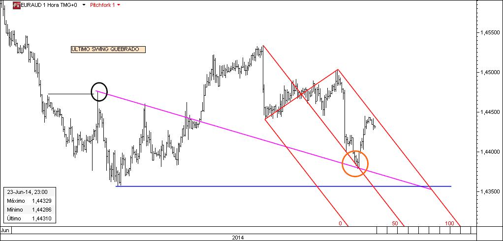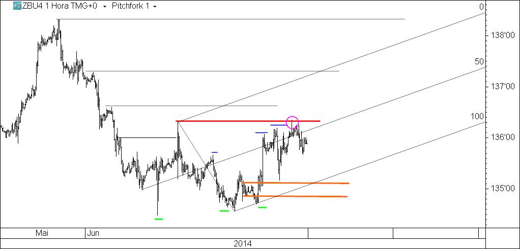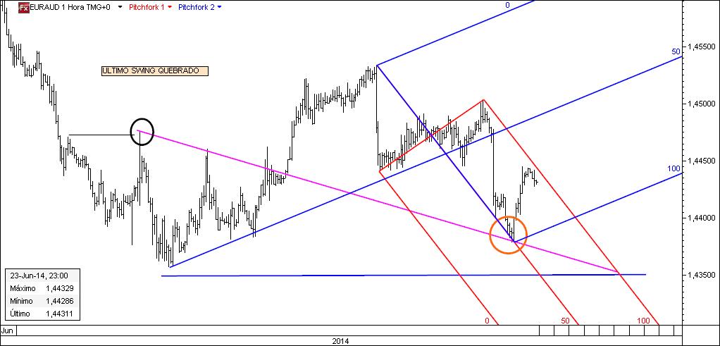Preço continua sua relação com a área anteriormente identificada. Pivot c do fork alterado para acompanhar a evolução do preço. Continuando a seguir o comportamento do preço.