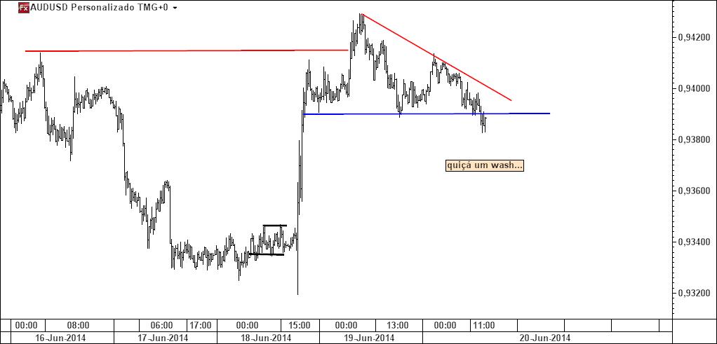 Mercado denota estar em fase de acumulação. Como trader de momentum, estas fases não me interessam, a não ser que se percepcione uma "banhada" e/ou um bom local para colocação da stoploss. Fazer o trading do range "exige" certo tipo de ferramentas.
