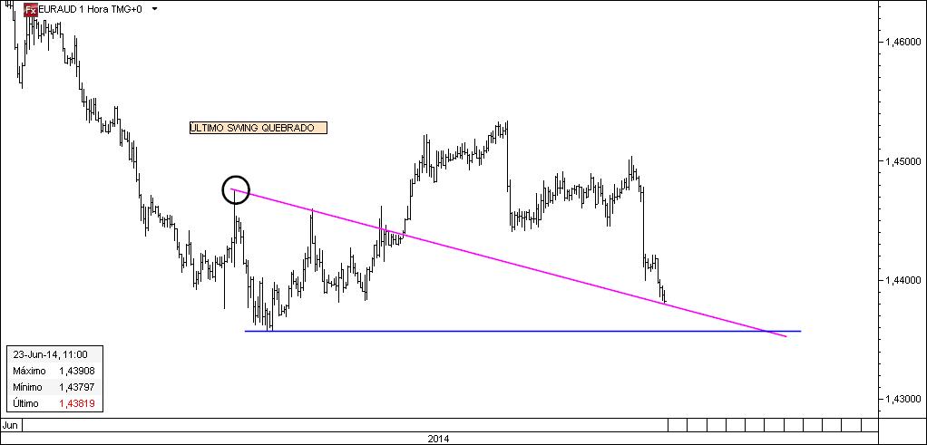 Preço quebrando o suporte. Potencial wash. Dado que o preço não se comportou do modo a justificar uma oportunidade especulativa, cessa aqui o acompanhamento deste par cambial e aguardar-se-á novos desenvolvimentos.