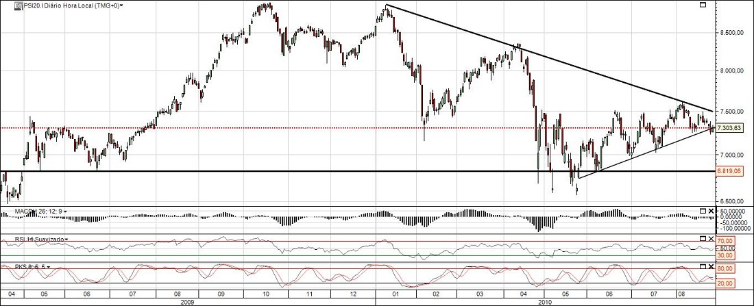 Assim como é verdade que a eventual quebra em alta desta resistência representará um bom sinal de entrada para os bulls, a sua manutenção também abrirá oportunidades interessantes aos bears, que poderão assistir a novas quedas em direcção ao seu suporte nos 6.600 pontos.