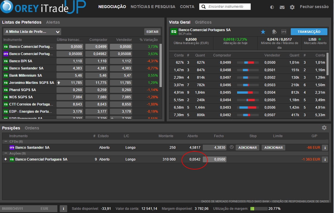 Hoje, contra a minha convicção, o BCP está a reagir bem em comparação com os restantes mercados, espero que continue, que não seja apenas uma correcção...