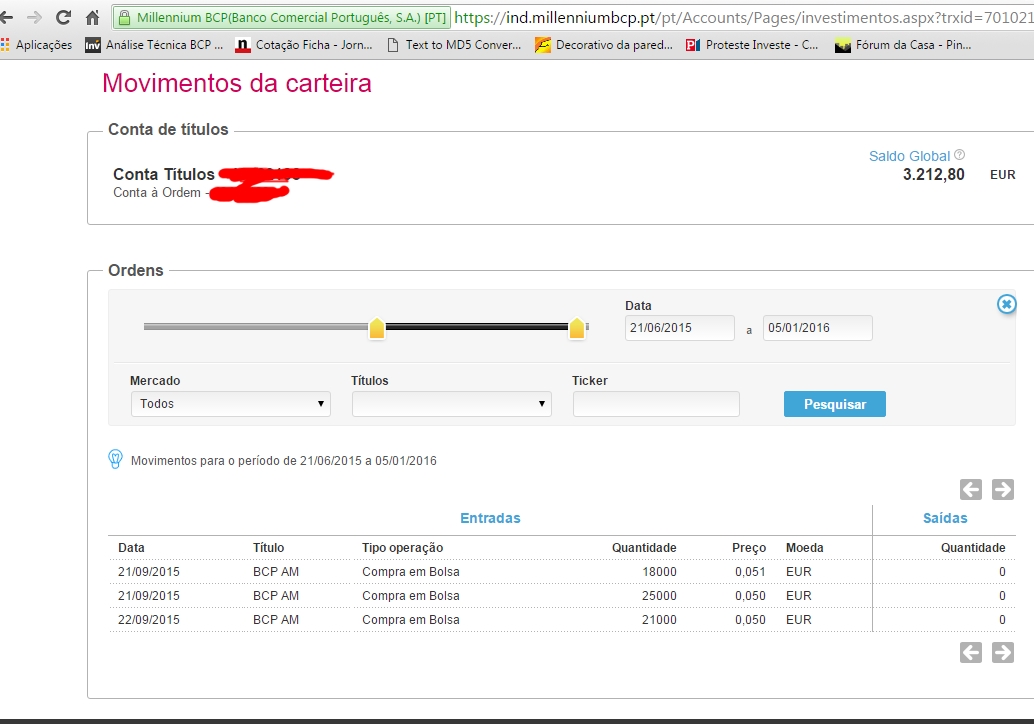 junto envio parte da minha carteira para que te deleites e assim respondo-te com imagens...só não vês a minha carteira de cfds.... tenho 310.000 accoes + 64.000 accoes + 120.000 em cfds.... quanto as accoes a media é de 0,053............