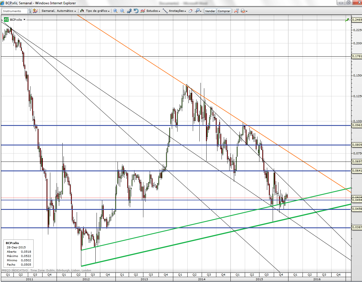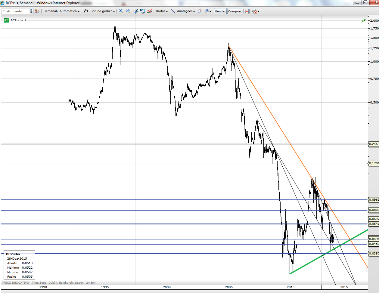 coloco aqui o grafico sem os Acs incorporados do BCP em bull onde mais do que quadriplicou entre final de 2013 e a queda do imperio BES em março de 2014.