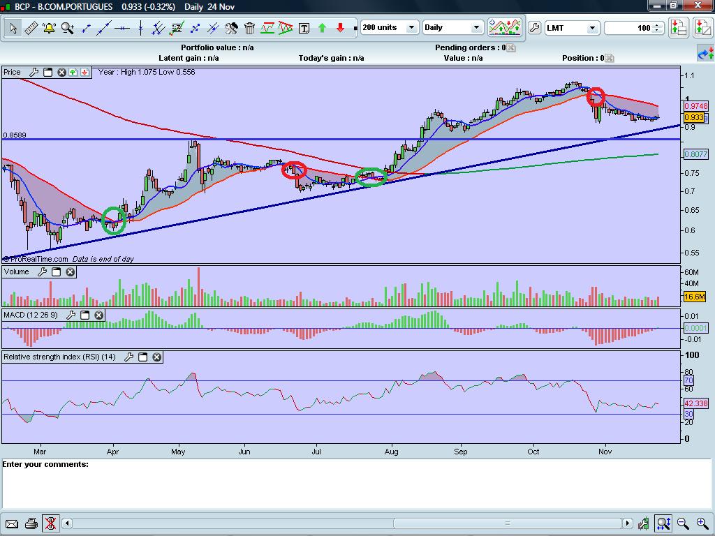 O Bcp pode perfeitamente tocar na lta dentro de 4-5 dias dentro dos valores actuais ou seja 0.93, nao tem que obrigatoriamente descer para respeitar a lta.