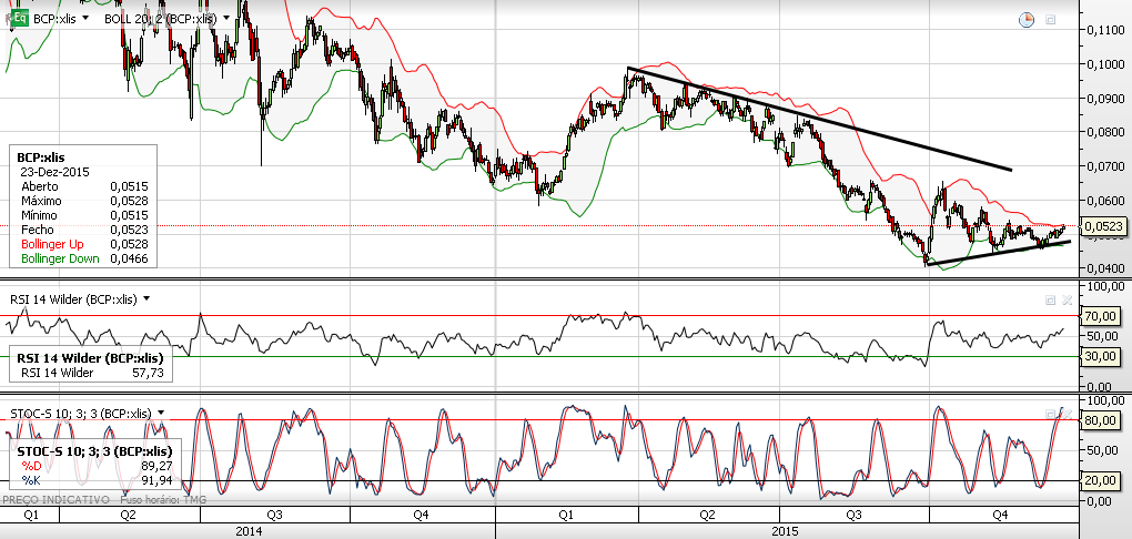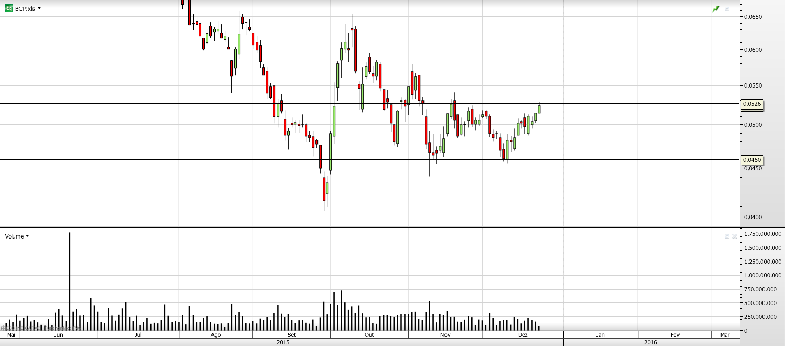 Olá manchini, depois do que se passou com o Banif não deu para aprender nada, o BCP ainda está em tendência descendente, em tendência descendente devemos estar focados em pontos de abertura para curtos e não em tentar adivinhar fundos e inversões de tendência; quando o BCP entrar em tendência ascendente, terei todo o gosto em investir longo nele, o objectivo se a analise se concretizar é o fundo do canal.