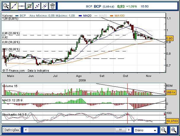 Os títulos do BCP somam ganhos de 14% em 2009.