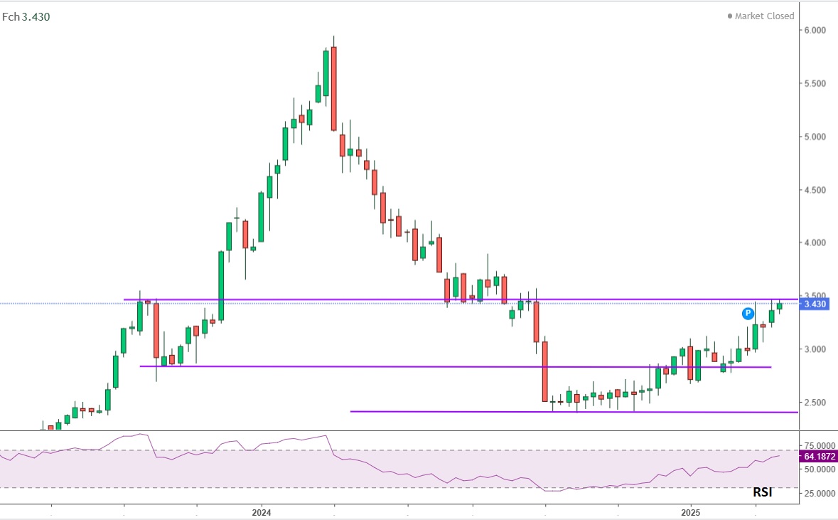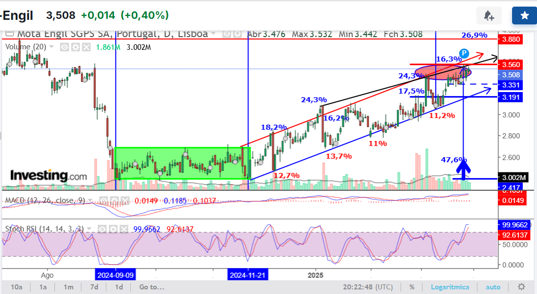 E lá temos breakout acima de 3,50 e início de mais um degrau… até aos 3,80 parece-me.