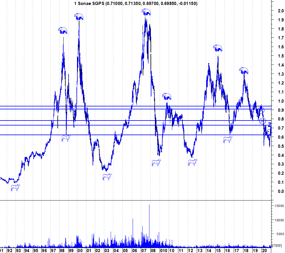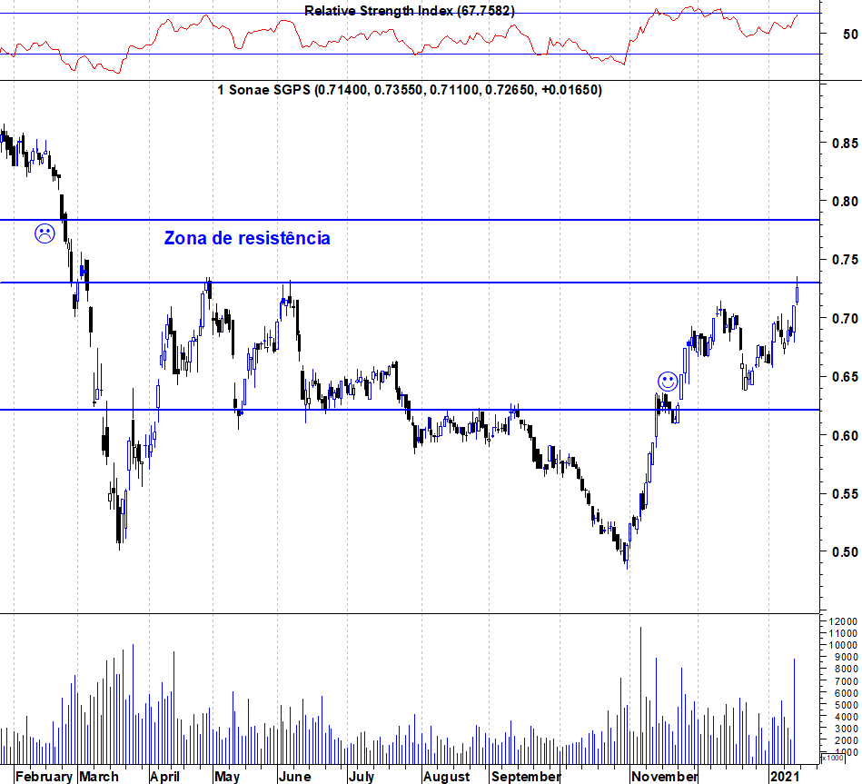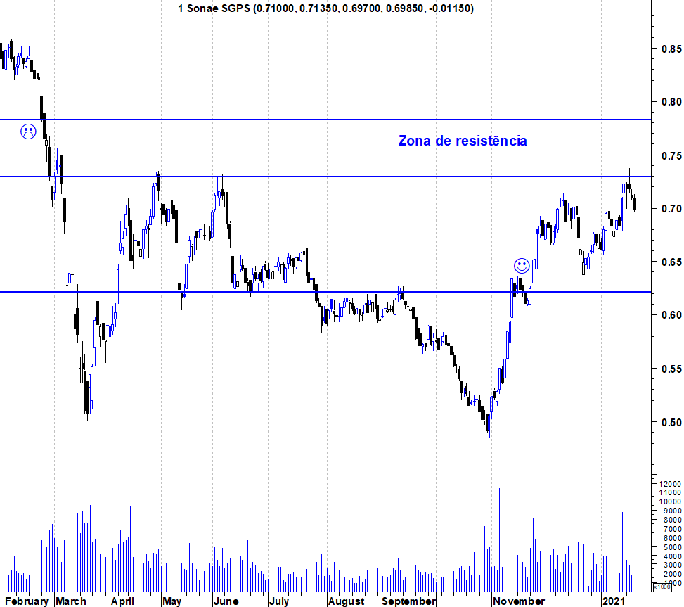 Fica a actualização dos gráficos da Sonae onde continua a ser bem visível a resistência que a Sonae tem que vencer.