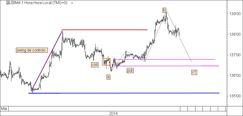 Gráfico 2: presentemente o preço "brinca" com essa median line, tendo formado um coil que poderá ser testado e dar lugar a mais uma oportunidade especulativa.
