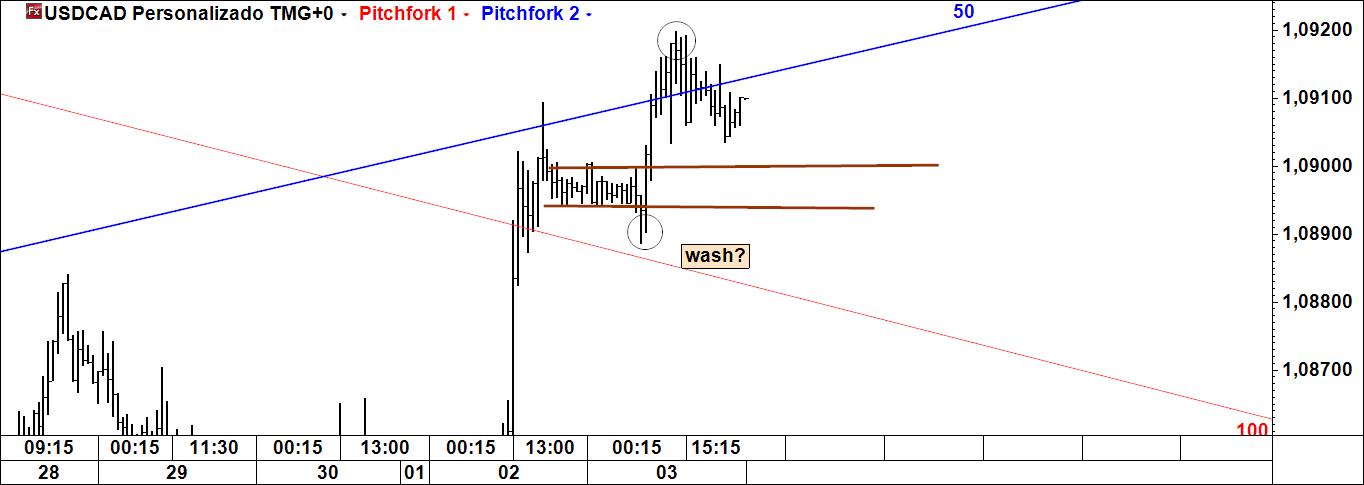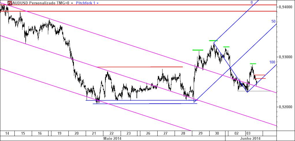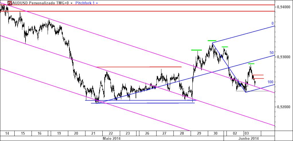Como já tive oportunidade de referir noutras ocasiões, nem sempre as linhas fornecem protecção para colocação da stoploss, sejam elas quais forem e ainda que estejam rodeadas das mais belas probabilidades. Serve isto para fazer ver que, no contexto do eventual negócio executado naquele par cambial, o "segredo" para ainda não termos sido stopados reside no lugar onde aquela foi colocada. Agora, se a estrutura escolhida será suficiente para aguentar a corrente fase descendente do preço é algo que não se pode saber de antemão, mas uma coisa me parece evidente: não faltará muito para se saber se se aguenta ou não (é agora que os compradores terão de aparecer para protecção da zona). Se a coisa quer efectivamente subir, então é preferível que o preço volte a gostar da linha média inferior do fork e "salte para cima dela" com todo o vigor.