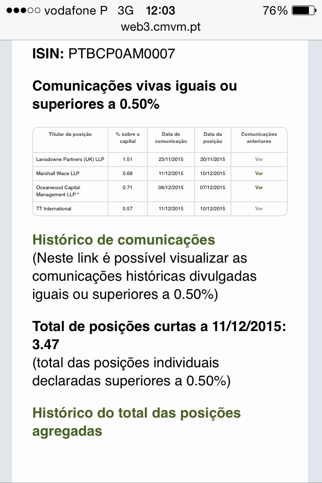 CYGNUS-X1 Escreveu:O BCP apresenta alguma consistencia nos últimos dias, no entanto os curtos ainda não diminuíram posições.
