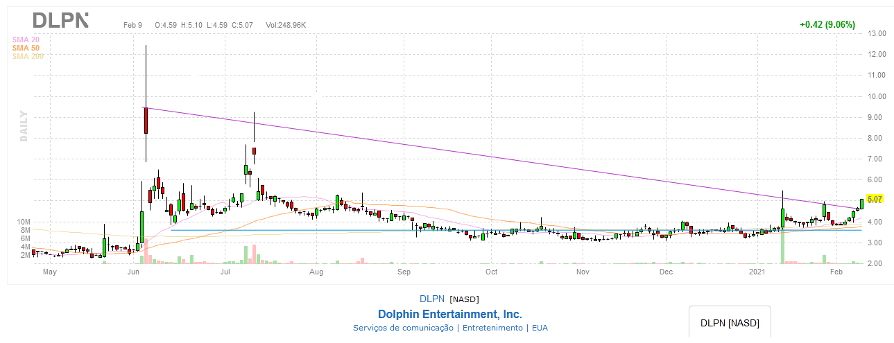 O boneco da minha amiga até que está a ficar catita. A DLPN sobe com pouco volume, que na minha opinião é um bom sinal, pelo menos os curtos não a estão a atacar. Seria bom passar a resistência que se situa nesta zona dos $ 5 / $ 5,50. Para além de mim, alguém segue esta desgraçada ?