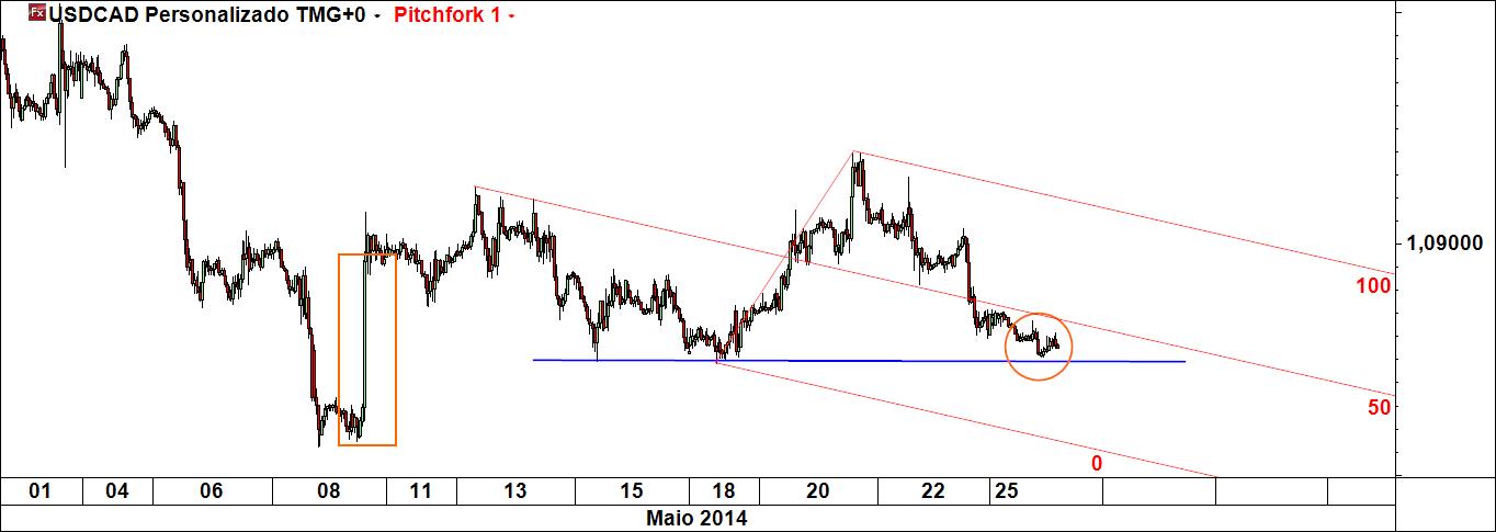 usdcad 45 m: se for mesmo uma banhada, o preço irá paulatinamente libertando-se do colete de forças.
