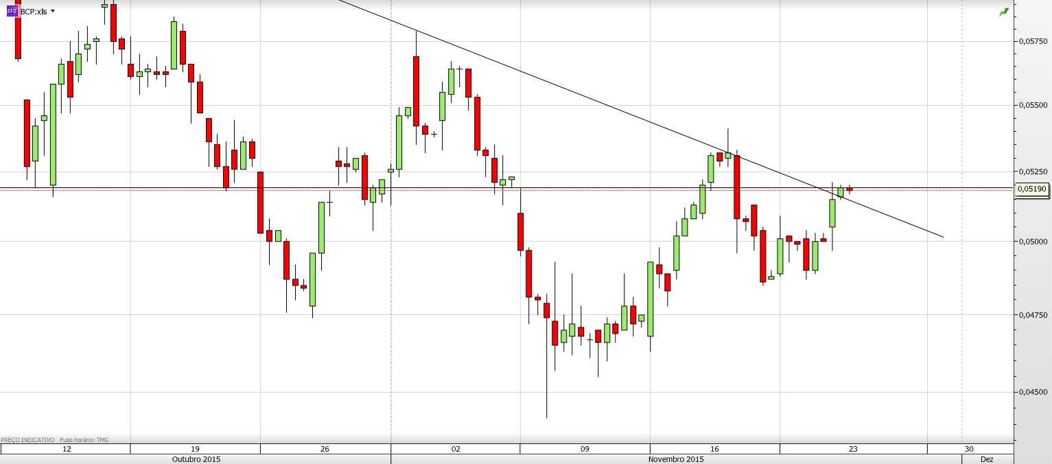 para o BCP atingir os 3 Meses em bull, terá de passar os 0,062 e os 0,086 para os 6 Meses.
