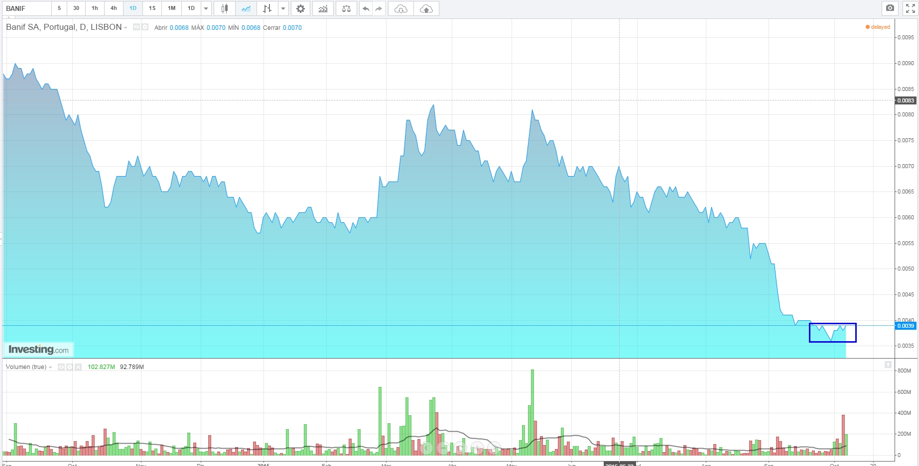 O que se passa com o banif, parece que estão accionistas a trocar acções, ou seja a entrar um grande accionista, reparo que as acções que entram 0,0039 são devoradas seja nos cofres da compra ou da venda tem que ser é a 0,0039 .......bastante curioso,.
