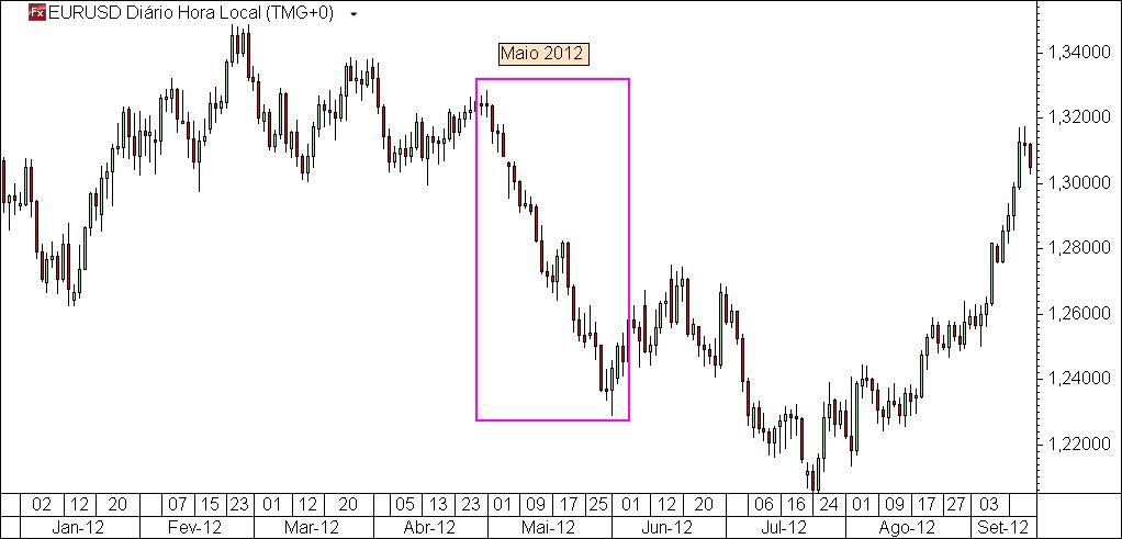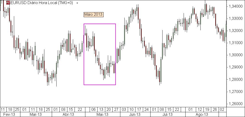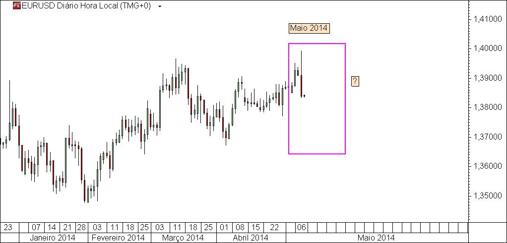 Alguns gráficos do EURUSD destacando-se o mês de Maio.