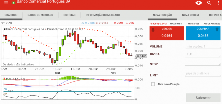 Se for um dia "clássico" à BCP ainda vai bater perto do máximo do dia ou até passar ligeiramente (0,0489)