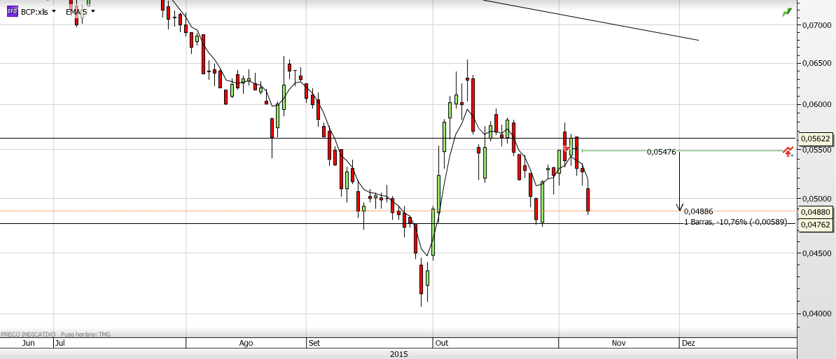 Nem mais. agora penso na Banca principalmente no BCP em queda apesar de continuar longo, só reforço na casa dos 0,0445, o Antonio Costa, ainda vai enterrar mais o BCP se capitalizar o NB como está a tentar faze-lo, ou seja mais exposicao, ao NB por parte do BCP, e cada capitalizacao, são 20%-25% de exposicao do BCP.