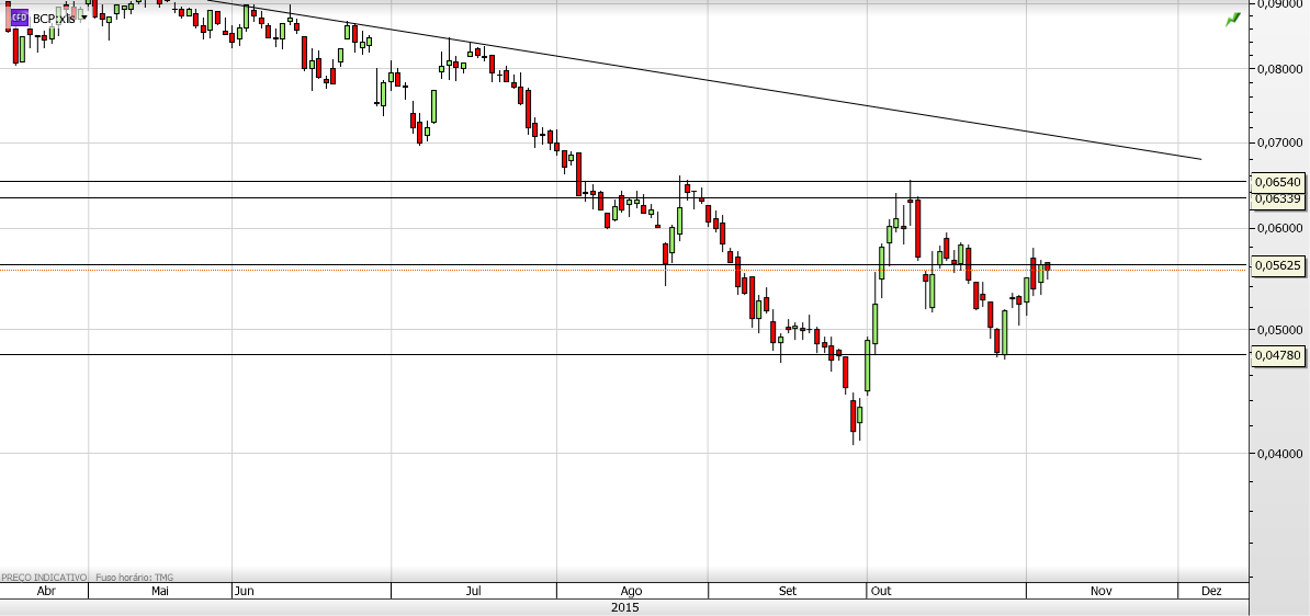 terminando.... o BCP tem uma barreira psicológica que precisa quebrar no curto prazo que será por volta dos 0.065 valor do ultimo A.C ....