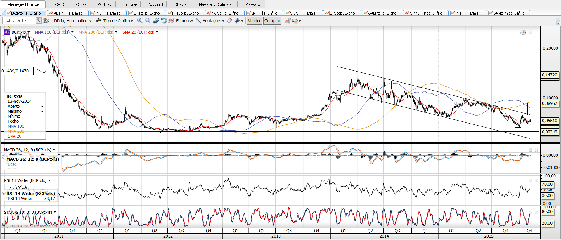 Apenas um pequeno ponto relativamente ao estudo técnico de títulos com historial de preços semelhantes ao BCP, penny stocks etc..