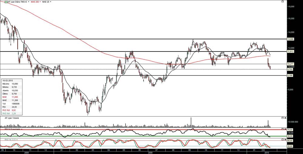 Apos o gap descendente (com aquele volume so pode ser de ruptura) no passado dia 11, o voo picado ainda nao parou. Se nao aguentar no ponto onde se encontra neste momento (nao sera nada facil) so vejo os +-9,20 e os 8,25 como possiveis suportes. Referir que os volumes tem abrandado nesta queda.