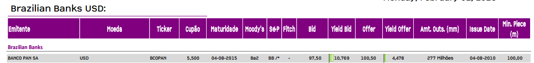 Cupão de 4,4% em USD par obrigações no ask acima do par? de bancos brasileiros ? Epá... quem é o te gestor de conta?
