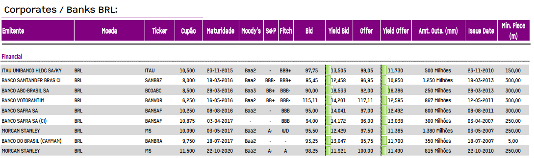 Em baixo temos por exemplo o ITAU com uma yield de 11,73% e com uma data de maturidade curtissima - 23-11-2015.