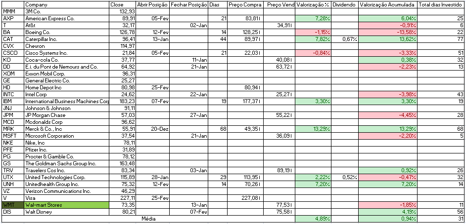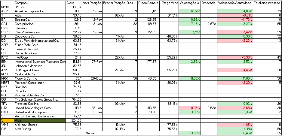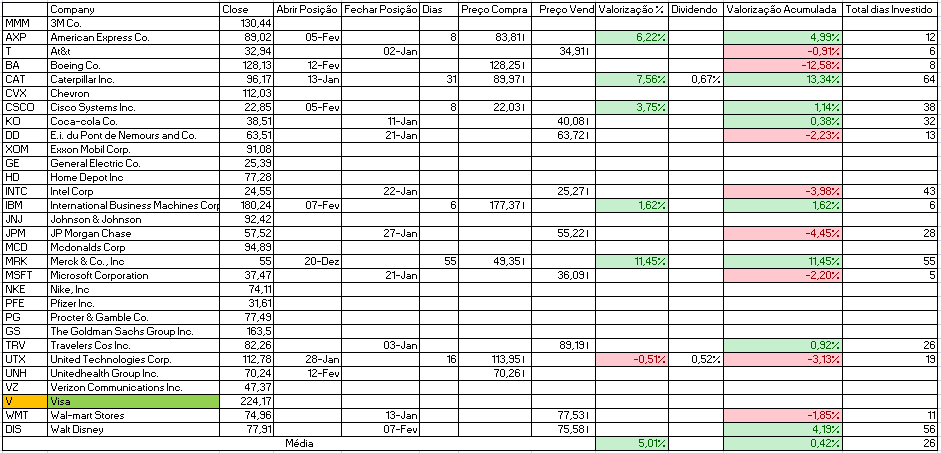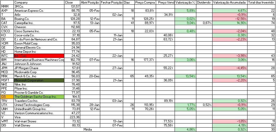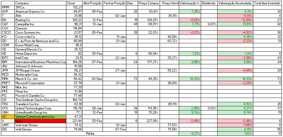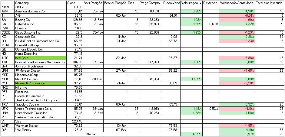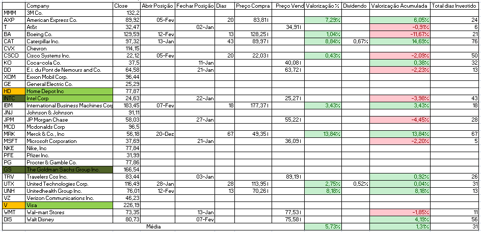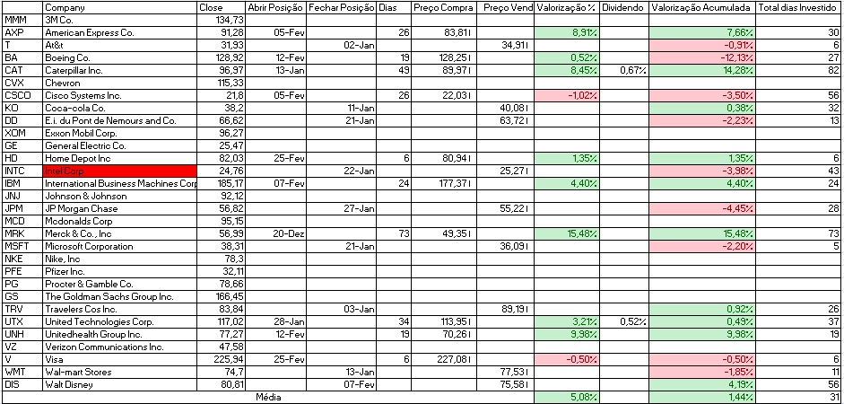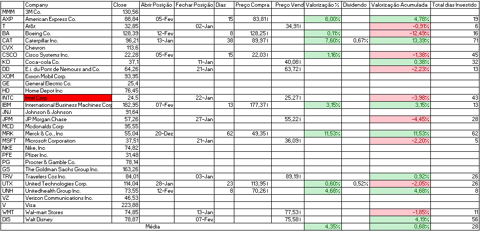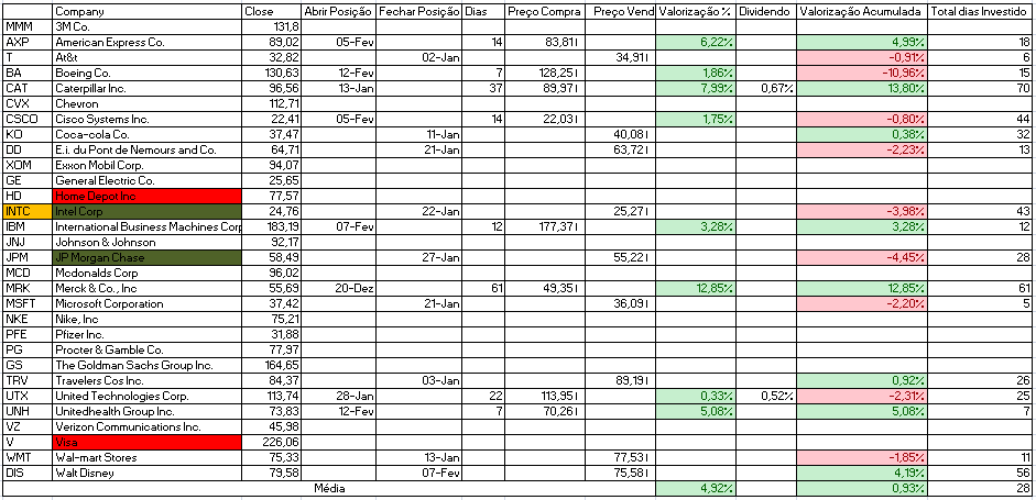 - Comprar: Home Depot Inc, Intel Corp e JP Morgan Chase.