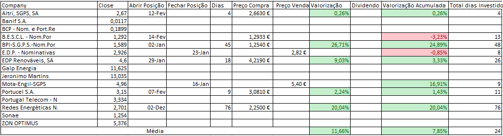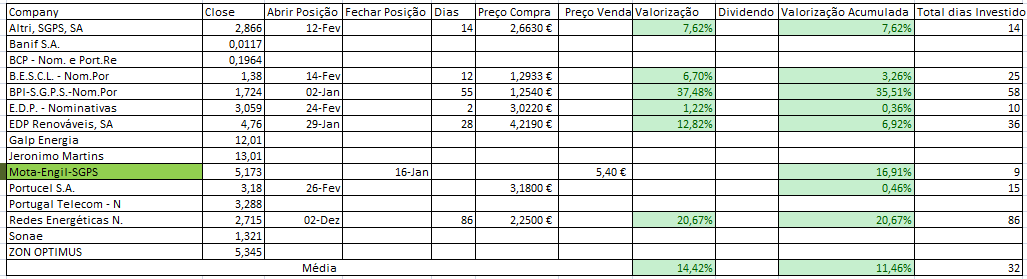 Para o dia 14 de Fevereiro só temos alteração de posição no PSI20: