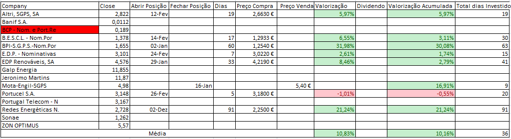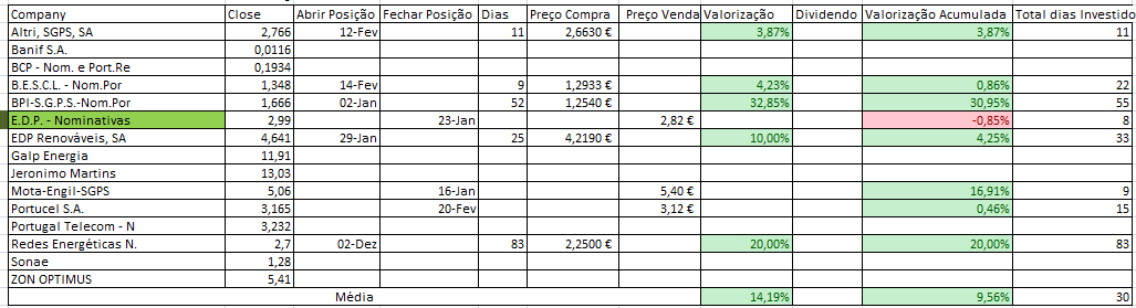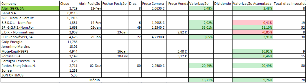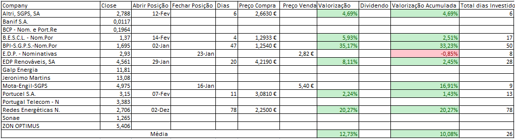 Se analisares ainda há muitos títulos onde ainda não entramos e que como tal temos 0 trades. Mas isso que dizes é uma boa estatística que acho que fará sentido inserir à tabela (Nº Trades|Tempo por Trade) e deste modo vamos conseguindo extrapolar o expectável para o resto do ano, com a nota que o número de trades não é constante ao longo do ano.