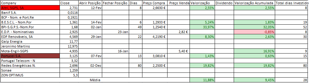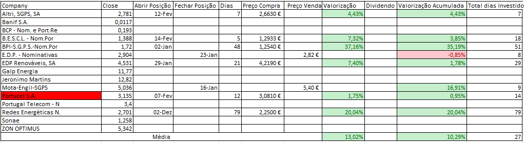 Relembro que fruto de uma exposição de perto de 200% ao mercado estou de momento com a carteira fechada para novas entradas.