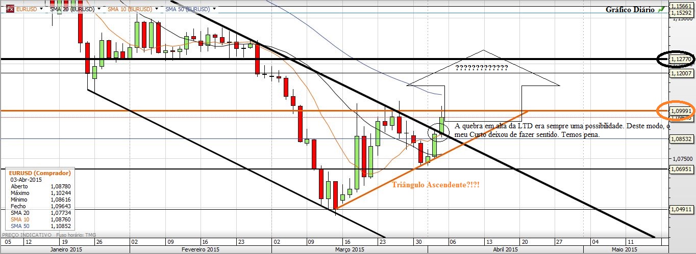 Por outro lado, a compra de USD foi longe demais. Considero interessante este espaço entre 1.05 e 1.10 para uma consolidação, antes de outros voos.