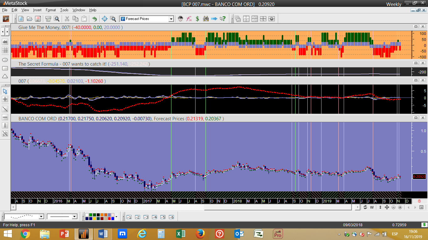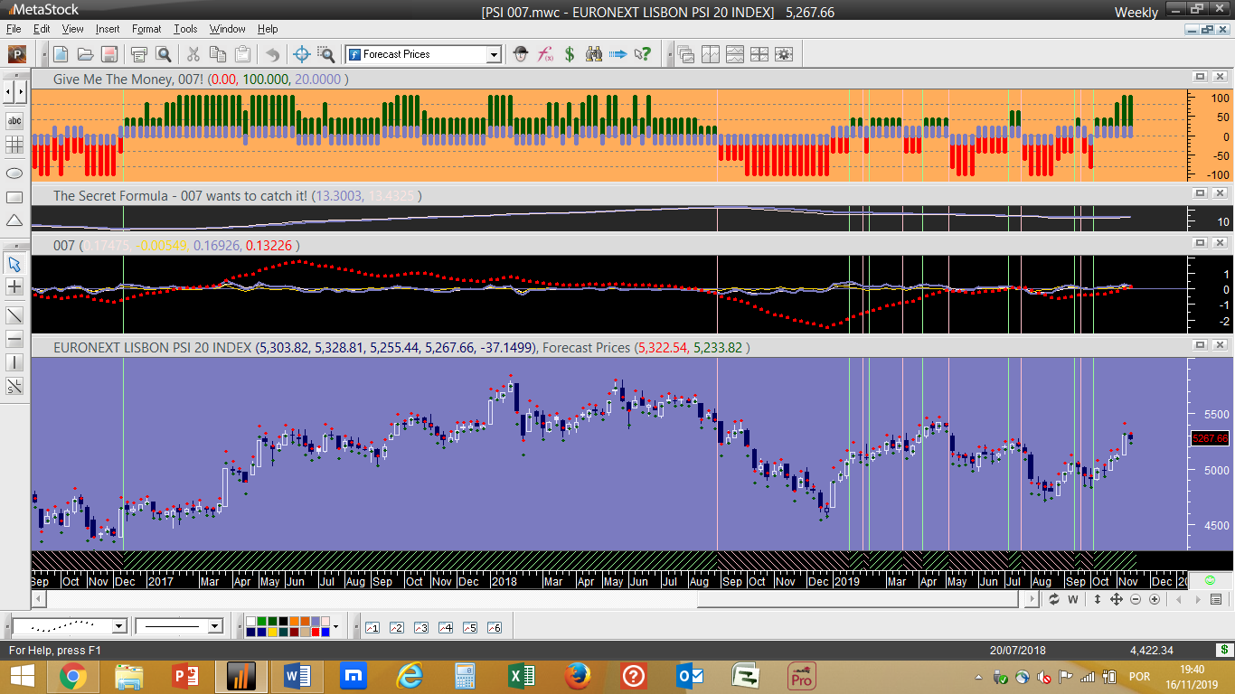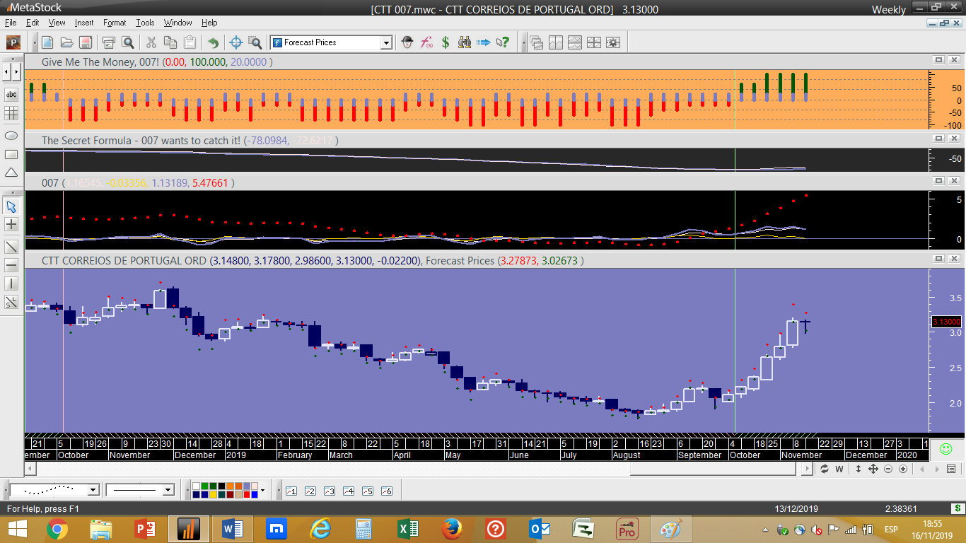 Apresentado que foi o novo sistema de trading, com o qual só começarei a negociar aos poucos a partir do próximo mês de dezembro, aqui ficam alguns pequenos exemplos: PSI, BCP e CTT nas versões diárias e semanais.