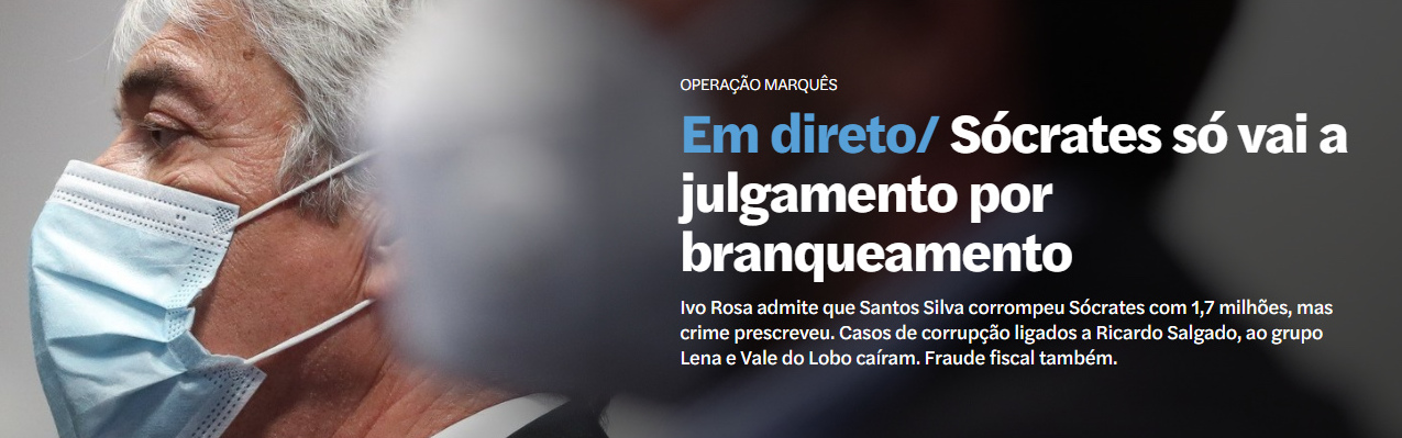 José Sócrates deixou o Campus de Justiça satisfeito com a decisão do juiz Ivo Rosa de não o levar a julgamento pelos três crimes de corrupção passiva de que estava acusado na Operação Marquês, afirmando que as “grandes acusações ruíram e com fulgor” (estava indiciado por 31 crimes), ao mesmo tempo que frisava ir defender-se das “mentiras contadas aos portugueses” e das acusações dos crimes de branqueamento de capitais (3) e de falsificação de documentos (3).