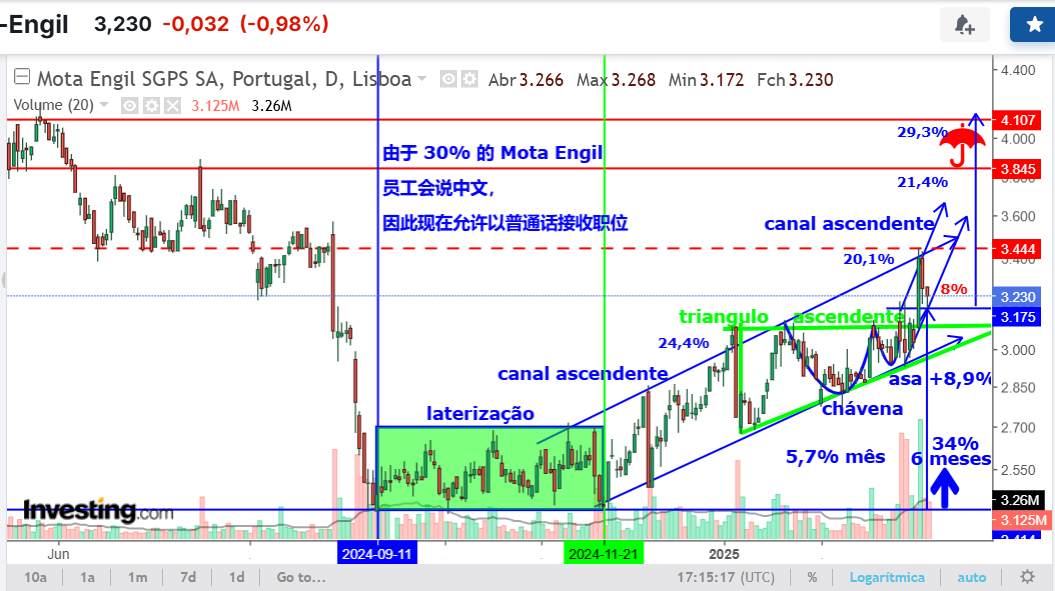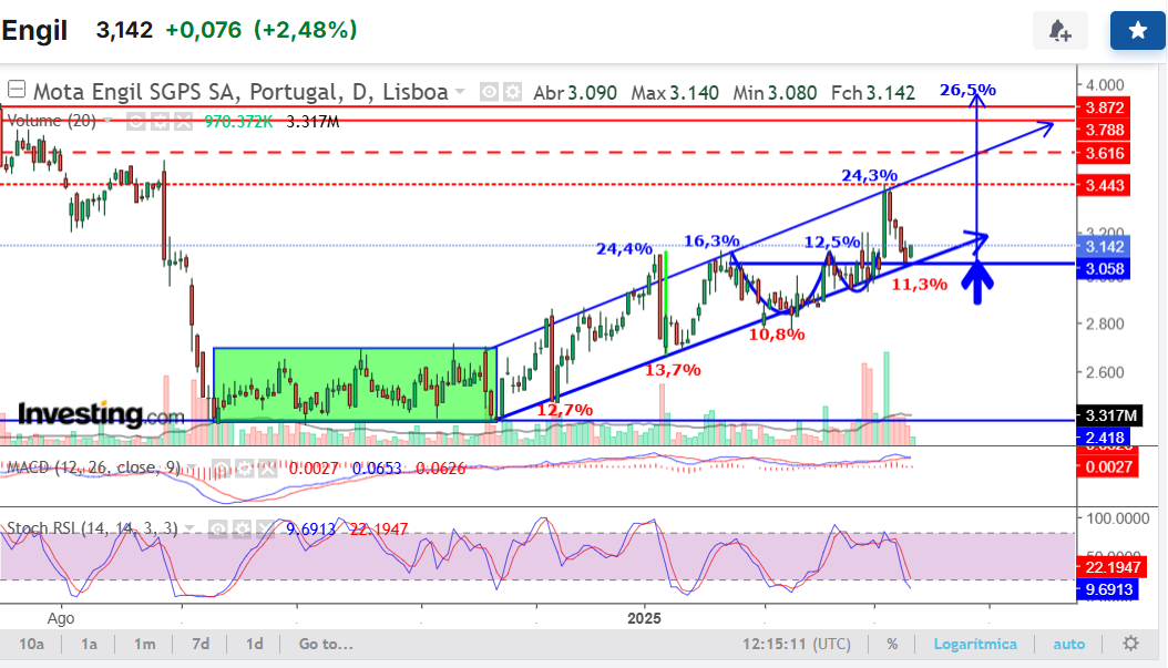 Bom, aqui fica a actualização do outro gráfico, complementar, que há pouco não tive oportunidade de colocar (por vezes há títulos que são tão erráticos/imprevisíveis, que não há muito que as ferramentas de AT possam acrescentar; não é, não tem sido, o caso da Mota).