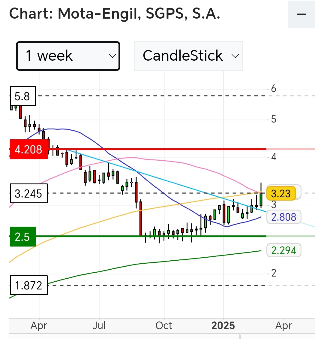 No gráfico semanal só há resistências a 4,2€ e estão ultrapassadas médias móveis?
