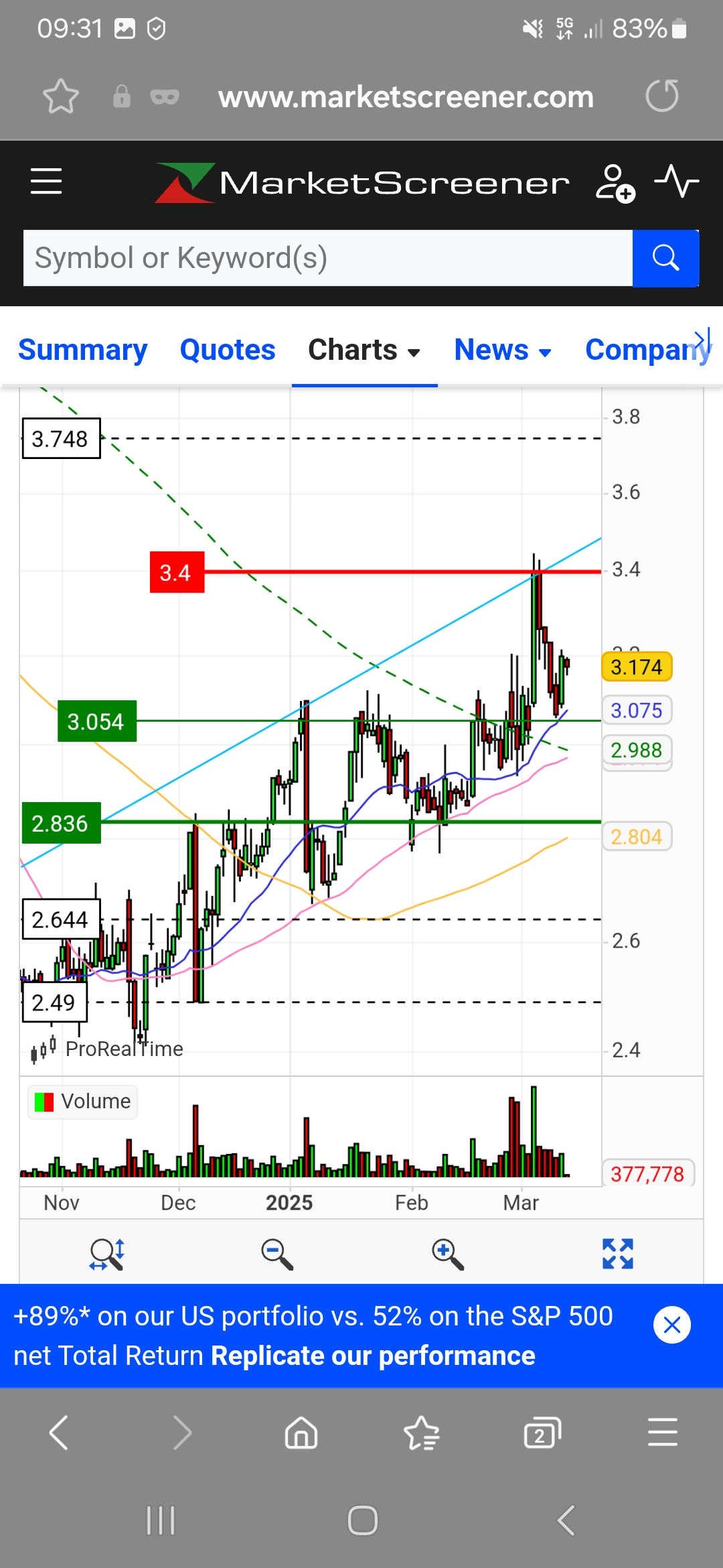 Kikoff Escreveu:No gráfico semanal só há resistências a 4,2€ e estão ultrapassadas médias móveis?