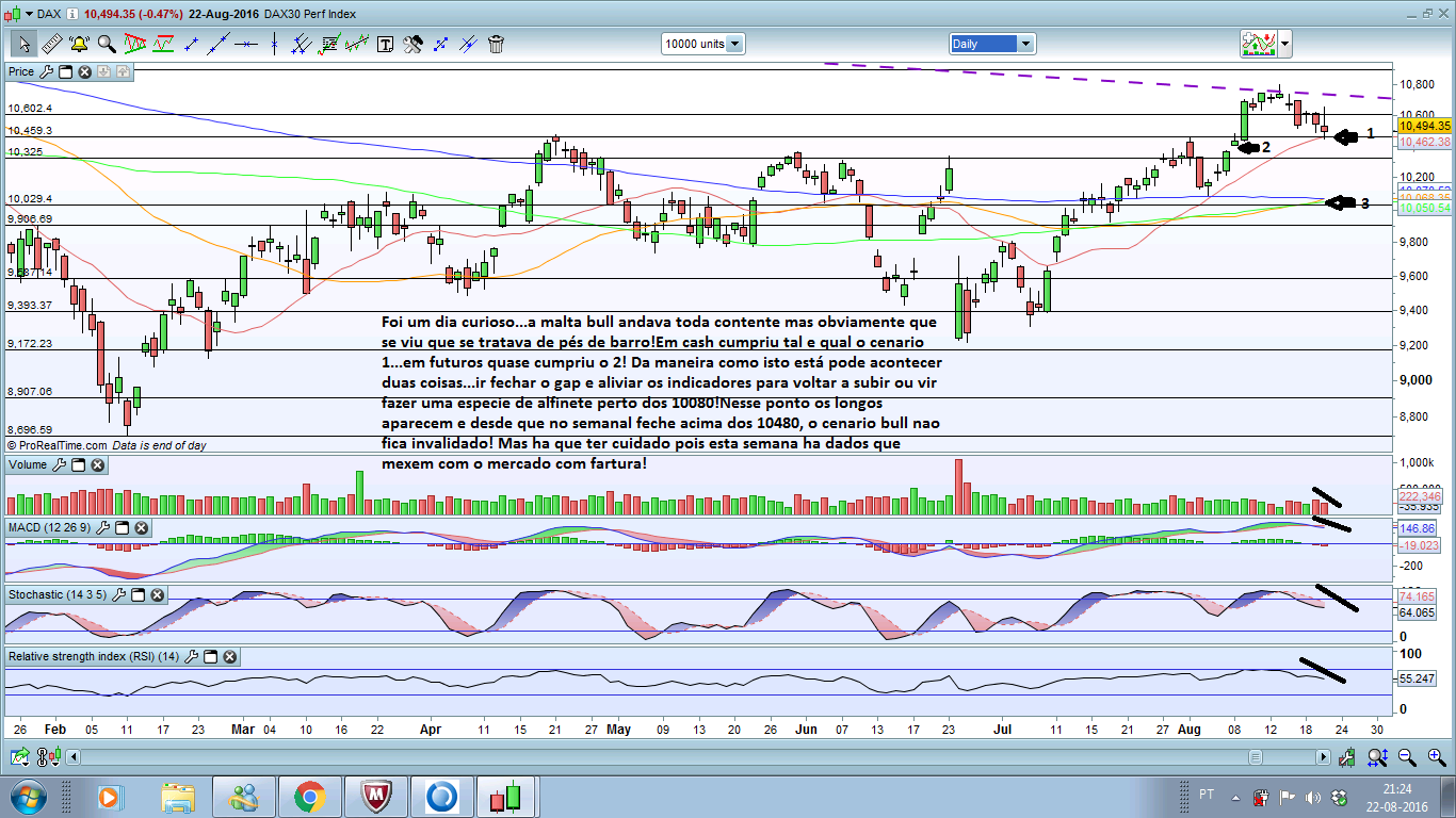 O DAX continua neste vai não vai, mais vale esquece-lo por uns dias. A linha verde mostrou hoje que está viva, e enquanto o preço se mantiver acima continuo a achar que existe maior probabilidade de sucesso num trade longo.