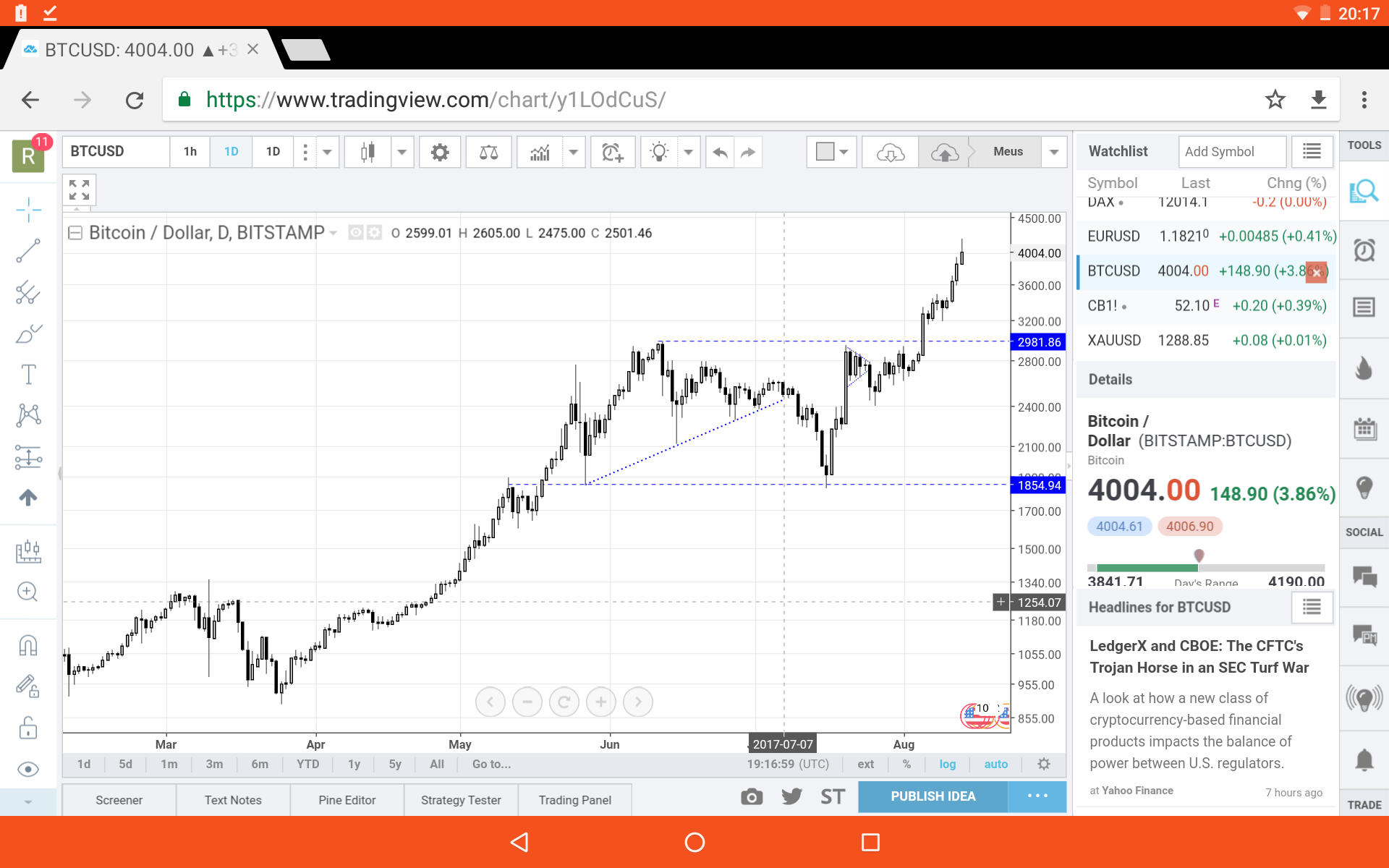 Bitcoin ultrapassa os 4000 dólares