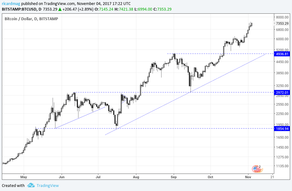 BTC/USD atinge máximos históricos e quebra a barreira dos 5000 dólares.