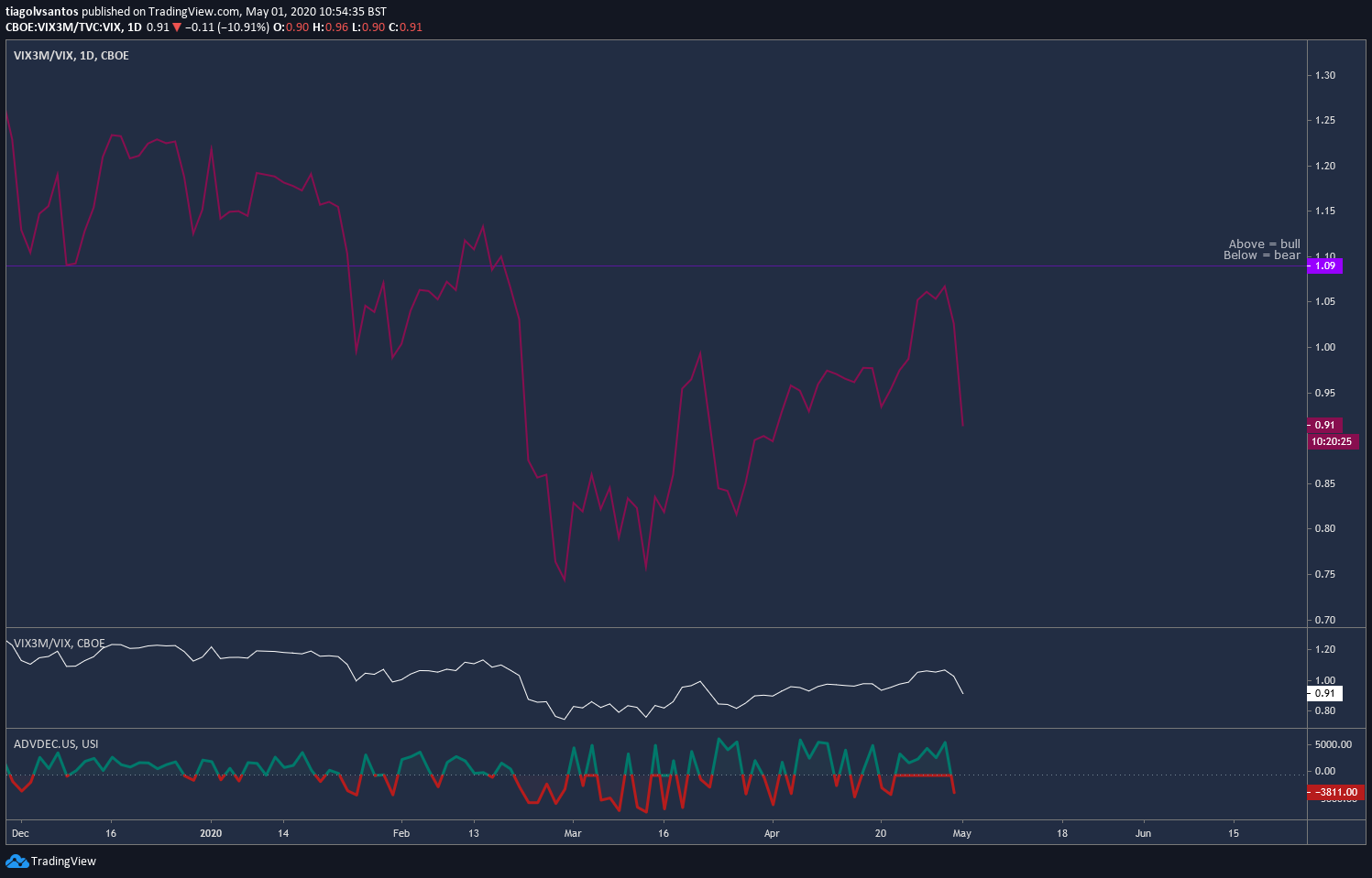 O único sinal atual é no VIX3M/VIX de bearish continuation.