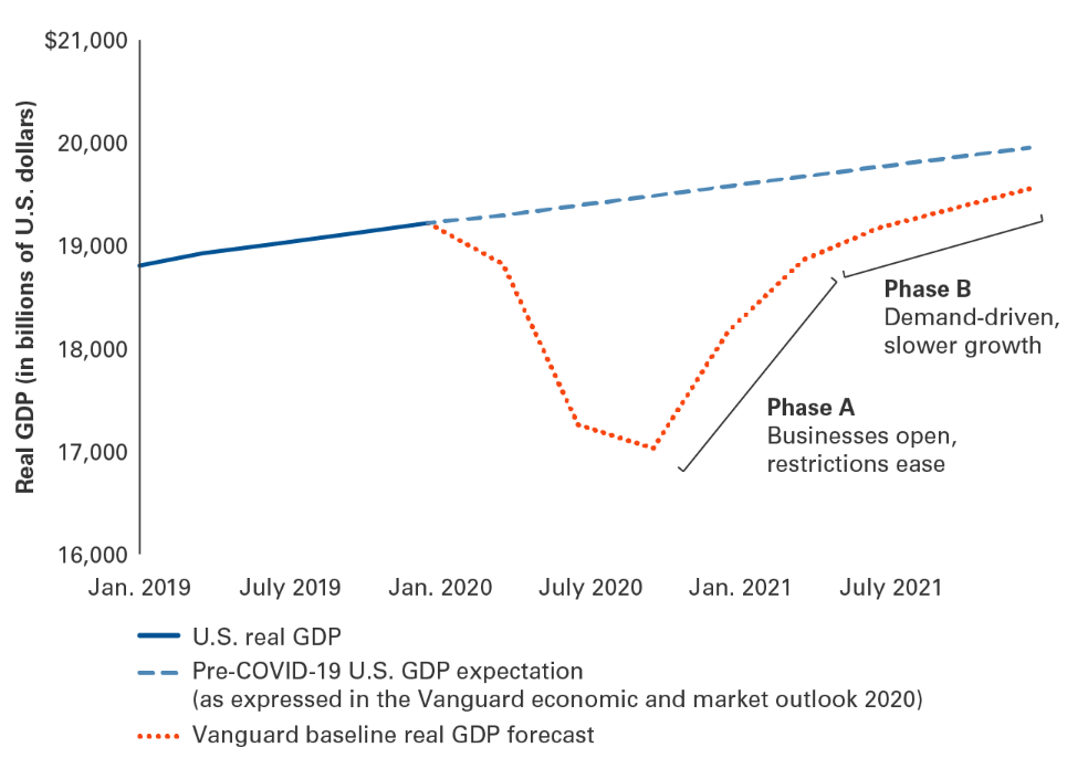 F) Reabertura faseada das Economias leva a menos pressão ascensional dos mercados: Pós-lockdown o movimento de reabertura vai ser mais lento e problemático do que o esperado V-turn no PIB projetado por Trump (menos pronunciado do que Trump acredita), logo....o crescimento económico no 3º trim. não será superior a 10%, após quedas de 12% no 2º trim. - ver penúltimo gráf.