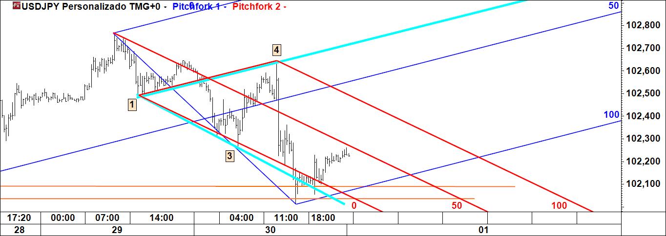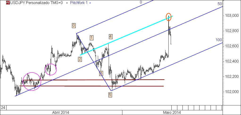 usdjpy 20 m: target atingido, nomeadamente a tal linha p2 - p4