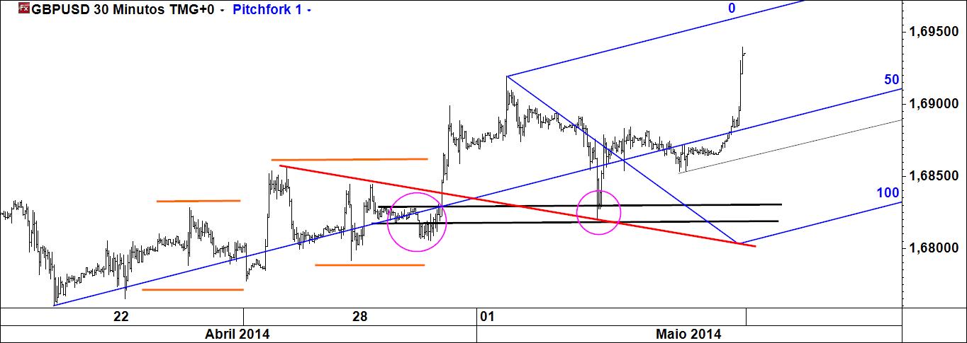 um "expanding pivots" de Andrews em desenvolvimento no eurusd 30 m?