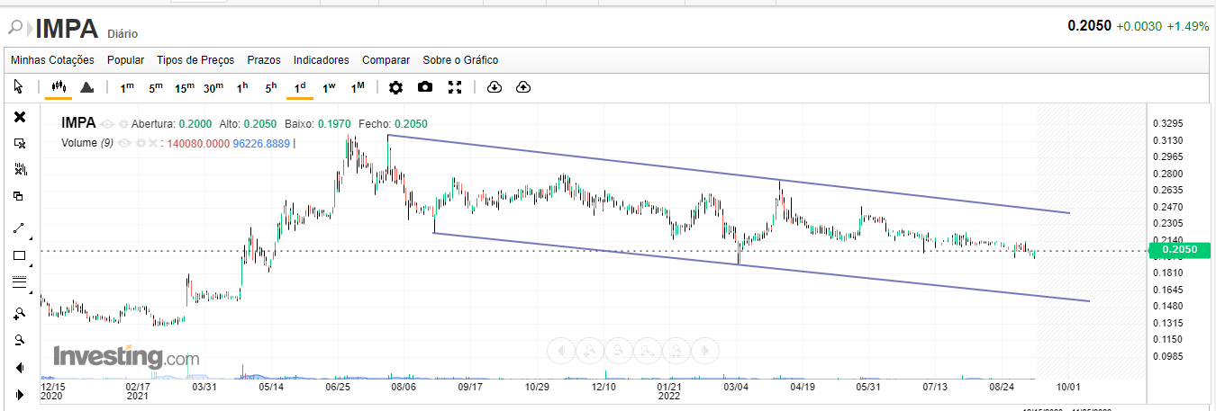 Deves estar a referires-te a estas duas linhas que de vez em quando tenho traçado. Estas duas linhas não são linhas de tendência. Traço-as apenas, e só, para mostrar que a cotação da Impresa tem se mantido entre elas. Percebeste?