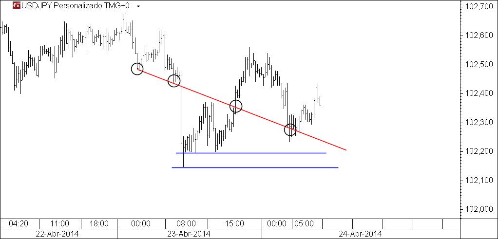 6.º gráfico: uma visão ampliada do local para se poder ver como o preço tem reagido à linha desenhada