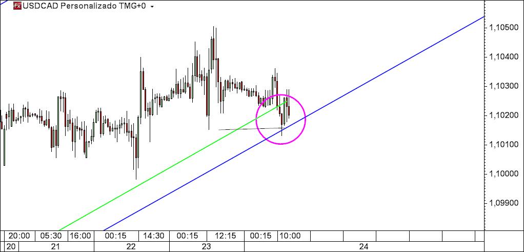 usdcad 45 m: ao afastar-se de uma linha que nos dá um sentido ou frequência não significa que o mercado esteja a inverter a tendência (que no caso levaria a que fossemos stopados),