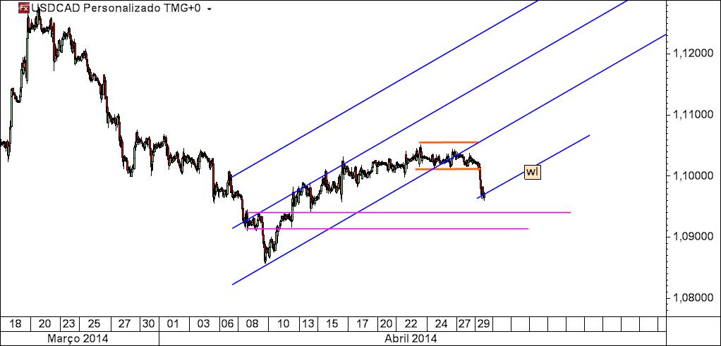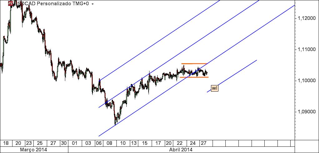 usdcad 45 m: mantém o caminho provável do preço dado pelas linhas médias mas continua adormecido num range, reunindo energia para o próximo movimento, seja ele qual for, sendo que são patentes os locais prováveis de destino,