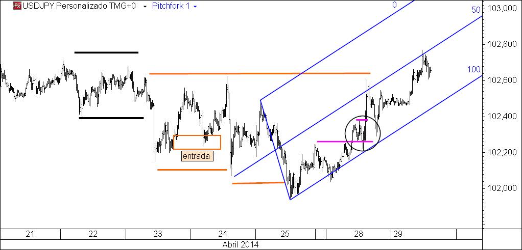 usdjpy 20m: continuando na luta com o prévio high e com e median line,