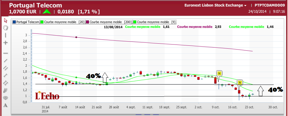 para a empresa recuperar até aos 1.4€ (estamos a falar 40%) vai precisar de muito empurrão para cima e esperemos que sim pois levou muita "porrada" nestes últimos dias e ficou sem força...uma recuperação desse tamanho pode levar muito tempo e depende do tratamento que façam nas feridas que afectaram a empresa...por isso calma para ir ao pote porque a PT não vale o que está em bolsa de facto mas, como disse, ainda não temos notícias de como vão sarar essas feridas...